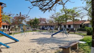 O Condomínio realiza semanalmente serviços de limpeza, higienização e desinfecção das áreas do parquinho, para maior segurança das crianças É proibida a permanência de animais (cachorros, gatos, etc).